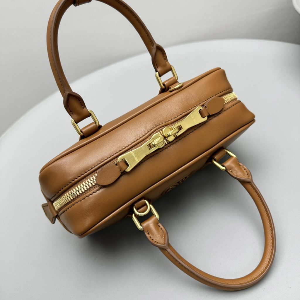 Tracolla regolabile e rimovibile in pelle. Lunghezza minima: 105 cm – Lunghezza massima: 115 cm – Luce minima: 53 cm – Luce massima: 57 com